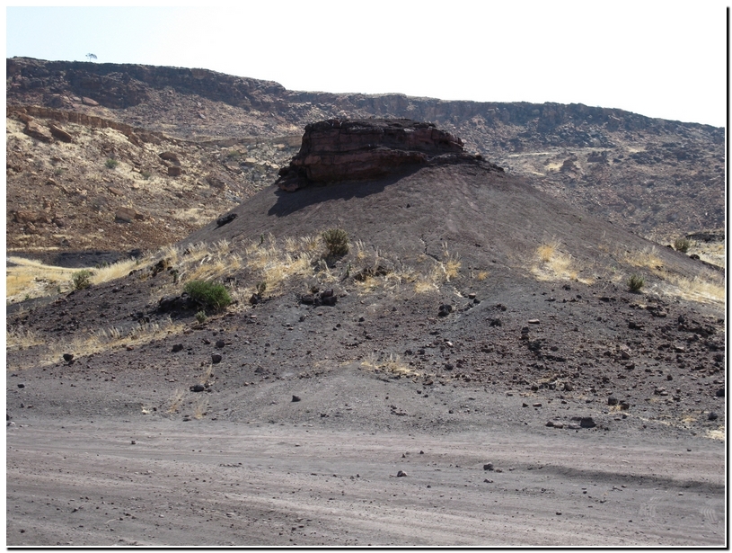Namibia-Safari 2011 Der Verbrannte Berg, verwandelt sich in der untergehenden Sonne in ein Feuerwerk von Rot- und Brauntönen.