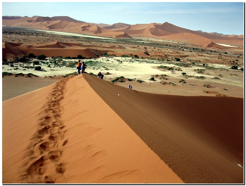 Sossusvlei. In der Wüste Namib von Dünen umschlossene beige Salz-Ton-Pfanne.