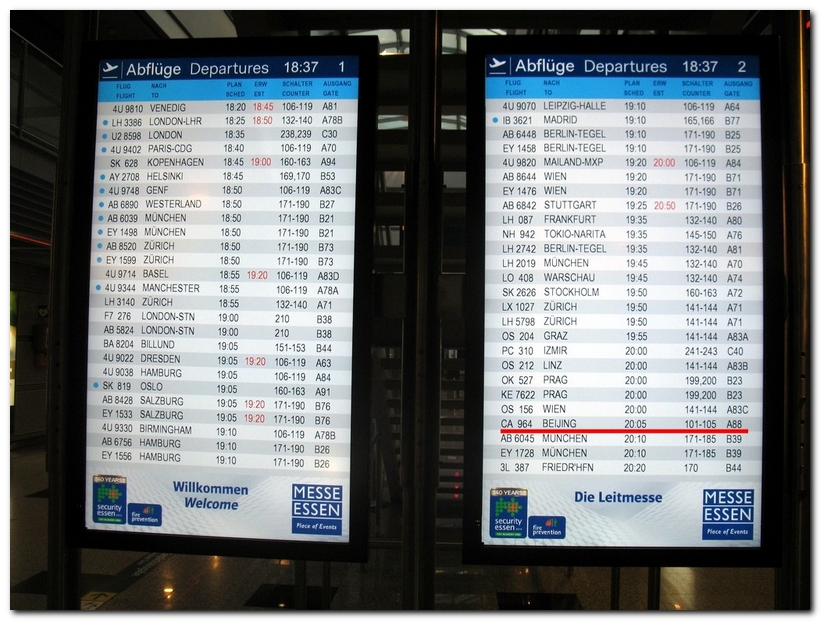 20:05 Uhr Abflug von Düsseldorf nach Peking.